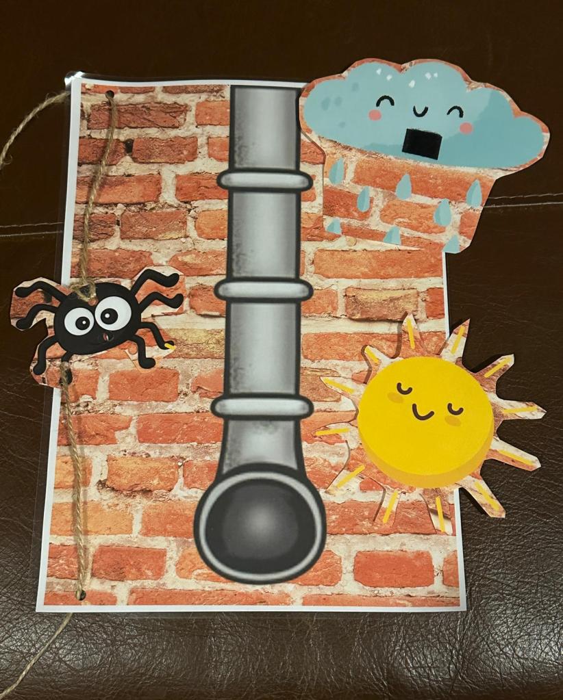 You will need to cut out your spider, sun and rain cloud, Add some string and a hole punch to enable Incy to go up and down the water spout. Use Makaton signs spider, sun and rain to support language